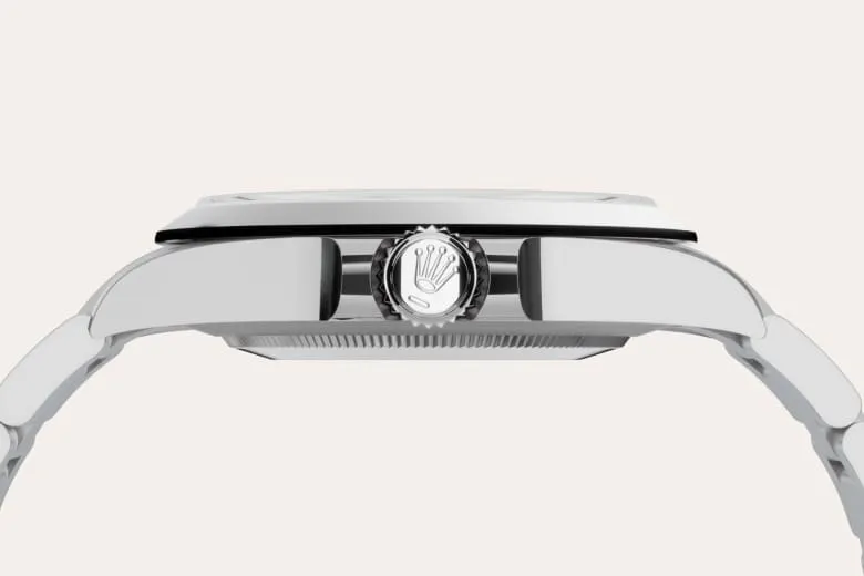 The Oyster bracelet is a perfect alchemy of form and function, aesthetics and technology, designed to be both robust and comfortable. It is equipped with an Oysterlock folding clasp, which prevents accidental opening and the Easylink comfort extension link, also exclusive to Rolex. This ingenious system allows the wearer to increase the bracelet length by approximately 5 mm, providing additional comfort in any circumstance.