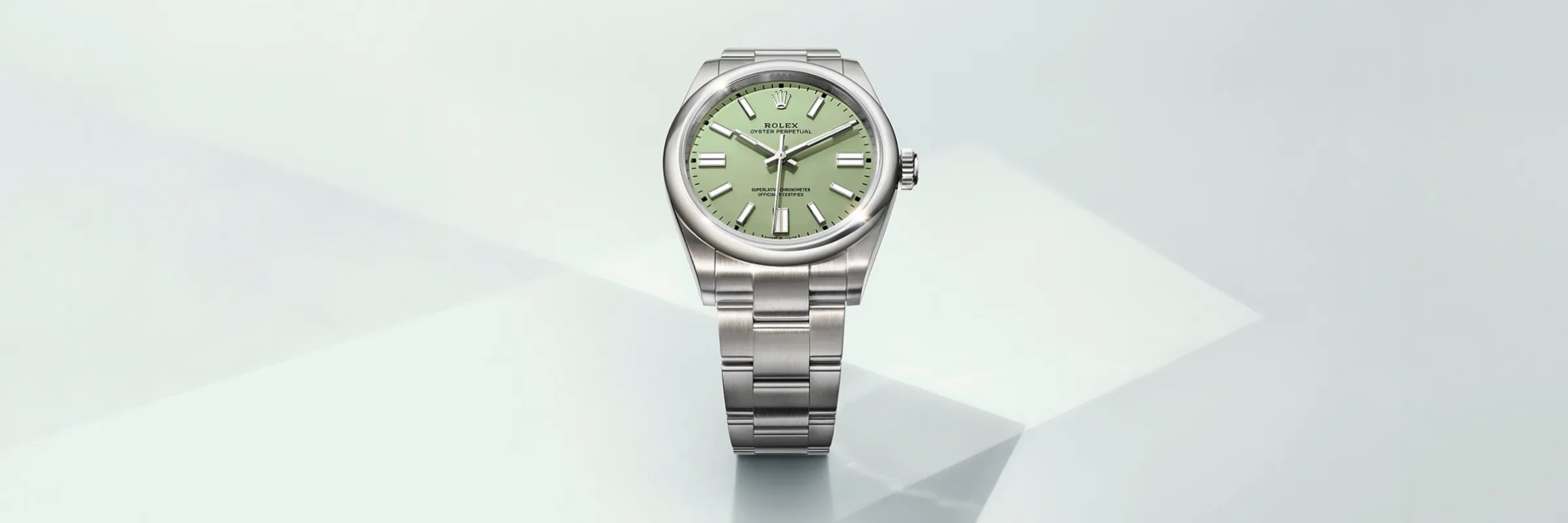 The Oyster bracelet is a perfect alchemy of form and function, aesthetics and technology. First introduced in the late 1930s, this particularly robust and comfortable metal bracelet with its broad, flat three-piece links remains the most universal bracelet in the Oyster collection. For the Oyster Perpetual models the Oyster bracelet is fitted with an Oysterclasp.