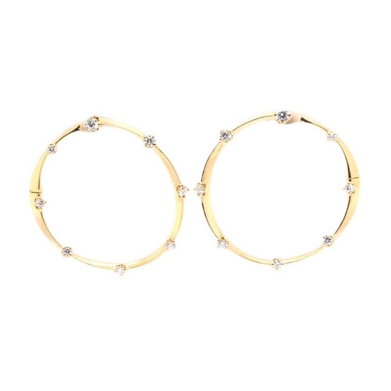 18k Yellow Gold Front Facing Diamond Hoop Earrings with 14 Round Diamonds Totaling 0.60 Carats.