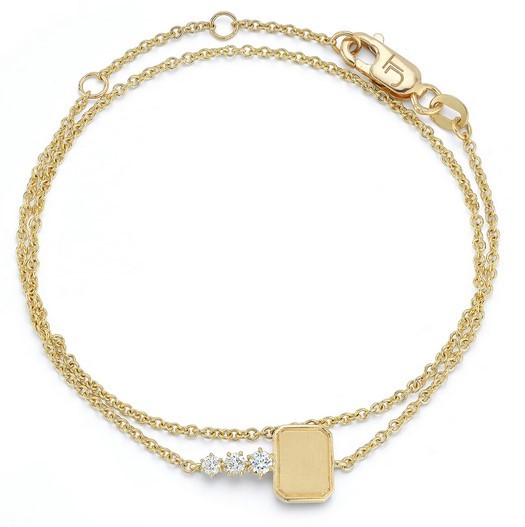 18k Yellow Gold Jade Trau Mini Catherine Key Wrap Bracelet with 3 Round Diamonds. Key is able to be engraved.
